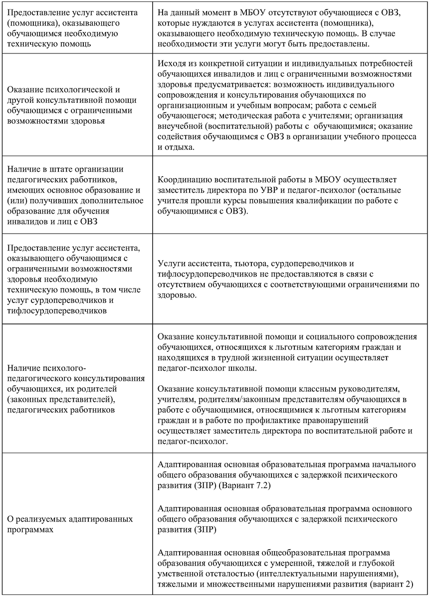 Для обучающихся с ОВЗ используются адаптированные образовательные программы согласно рекомендации ПМПК. Адаптированная программа разрабатывается с учётом особенностей развития ребенка, основной целью является коррекция нарушений развития и коррекция нарушений социальной адаптации. Разработкой адаптированной программы школа занимается самостоятельно. Основой для разработки адаптированной программы является ФГОС, ФГОС ОВЗ.