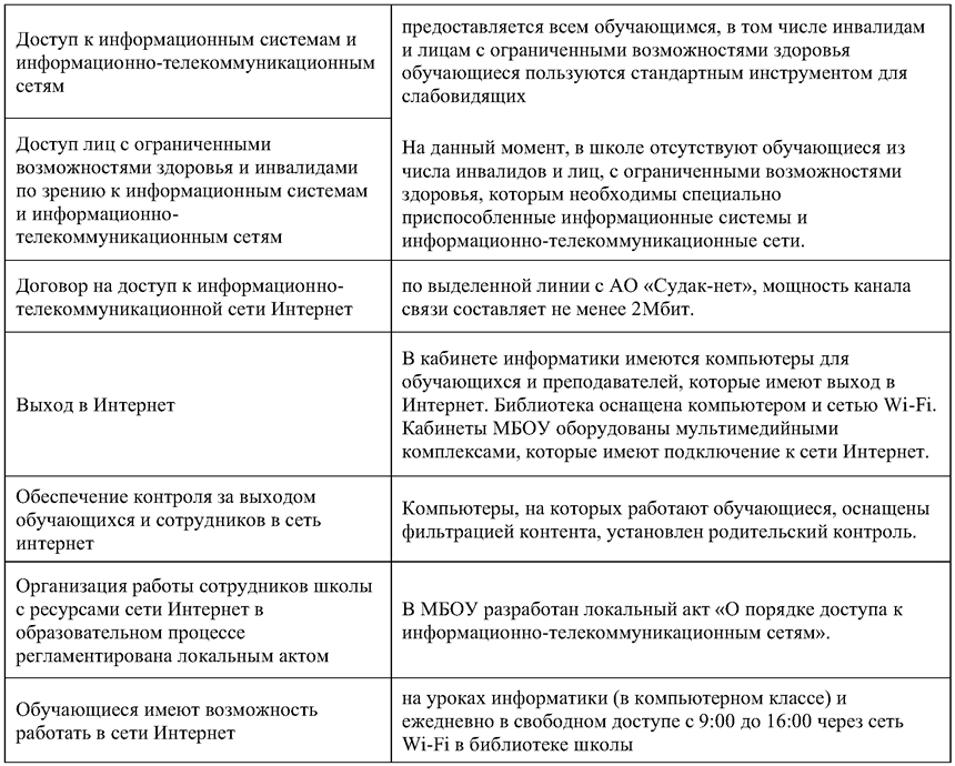 Сведения о доступе к информационным системам и информационно-телекоммуникационным сетям, приспособленных для использования инвалидами и лицами с ограниченными возможностями здоровья